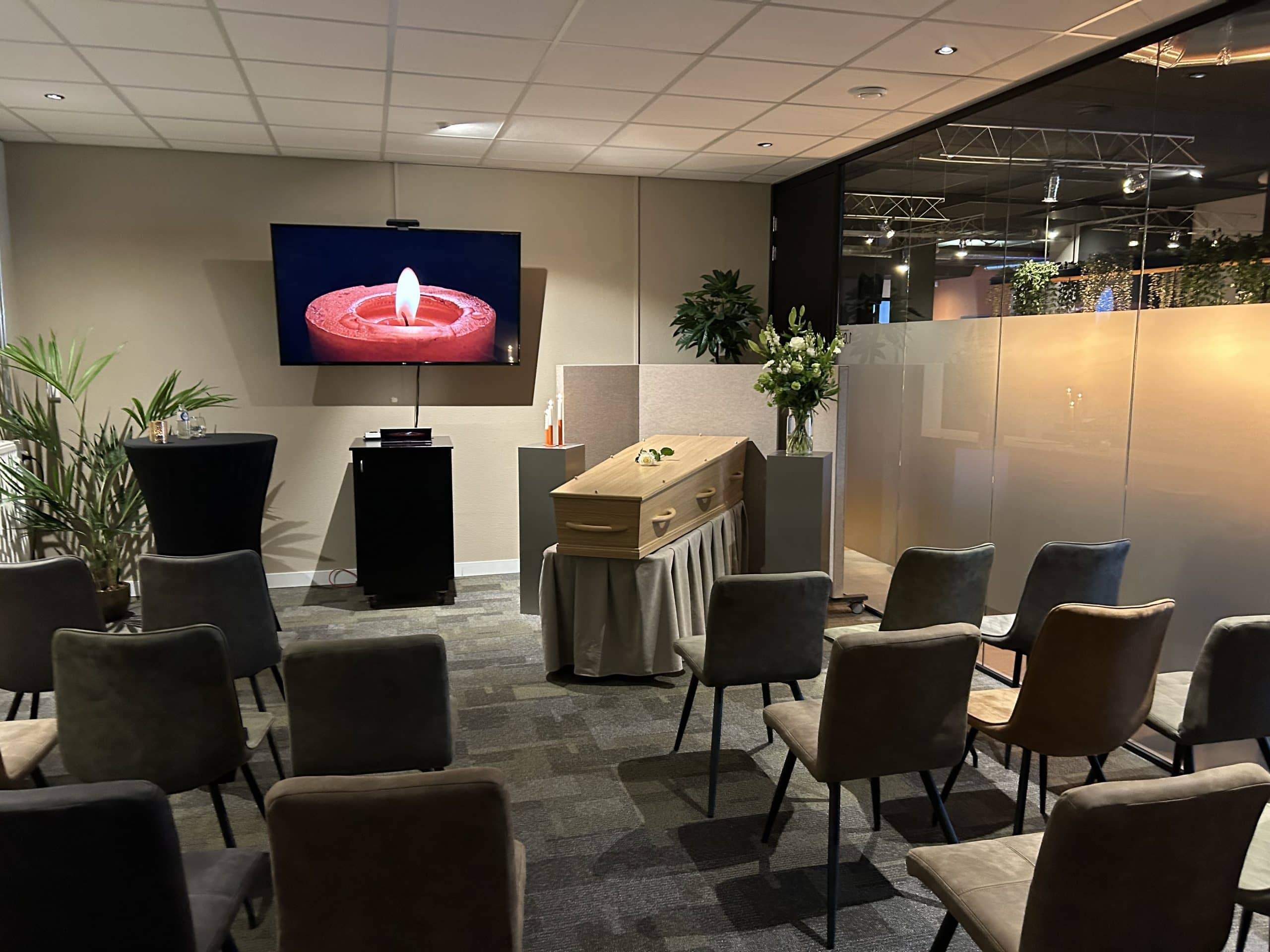 Voor een herdenking & condoleance kunnen wij zowel de dienst verzorgen als ook de bijeenkomst achteraf. Alleen de condoleance / koffietafel achteraf behoort ook tot de mogelijkheden. Voor een herdenkingsdienst biedt onze locatie zitplaatsen voor ca. 40 personen en een informele bijeenkomst achteraf voor circa 100 gasten.