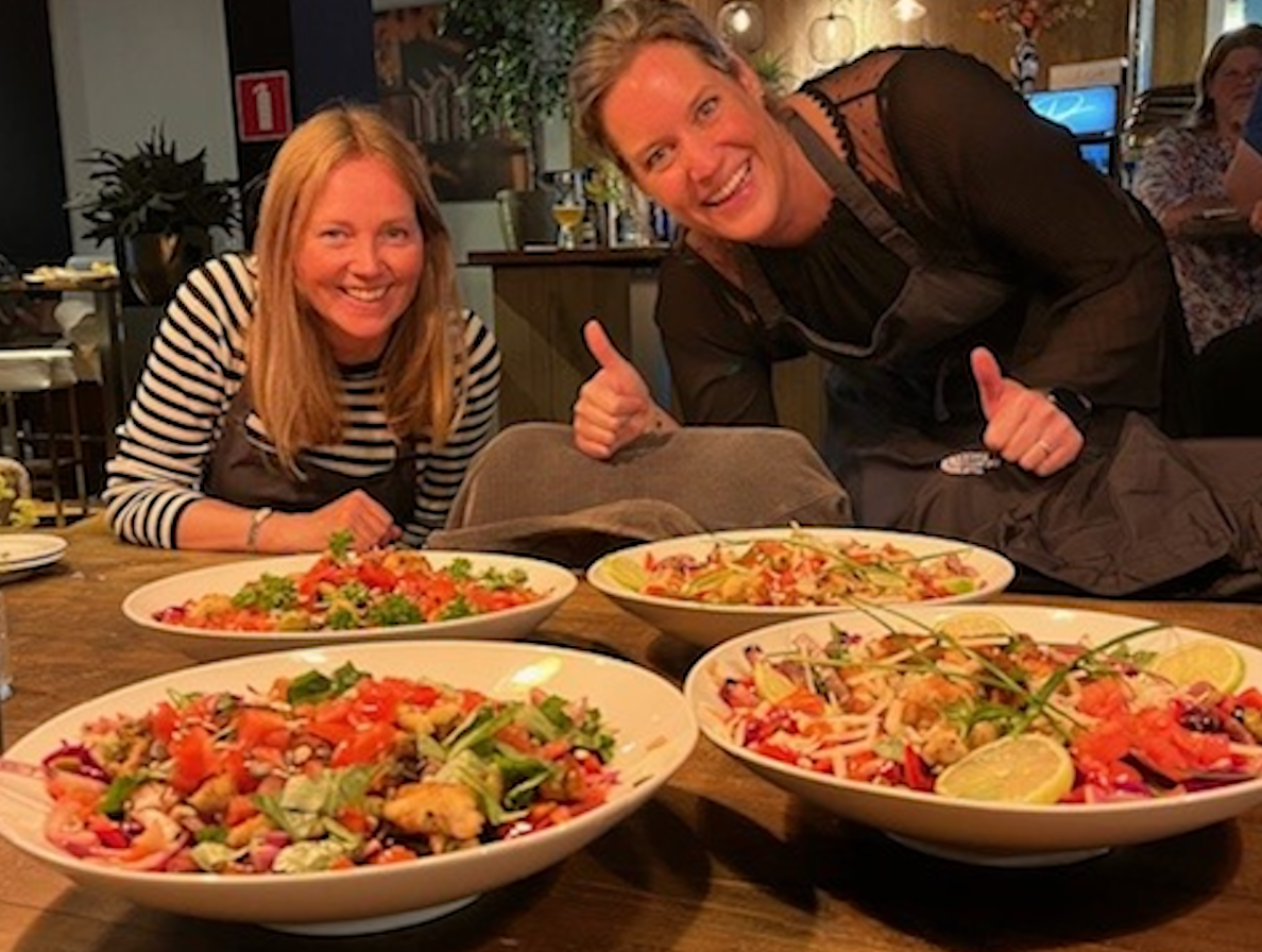 Koken als team versterkt de band; perfect voor bedrijfsuitjes of groepen.